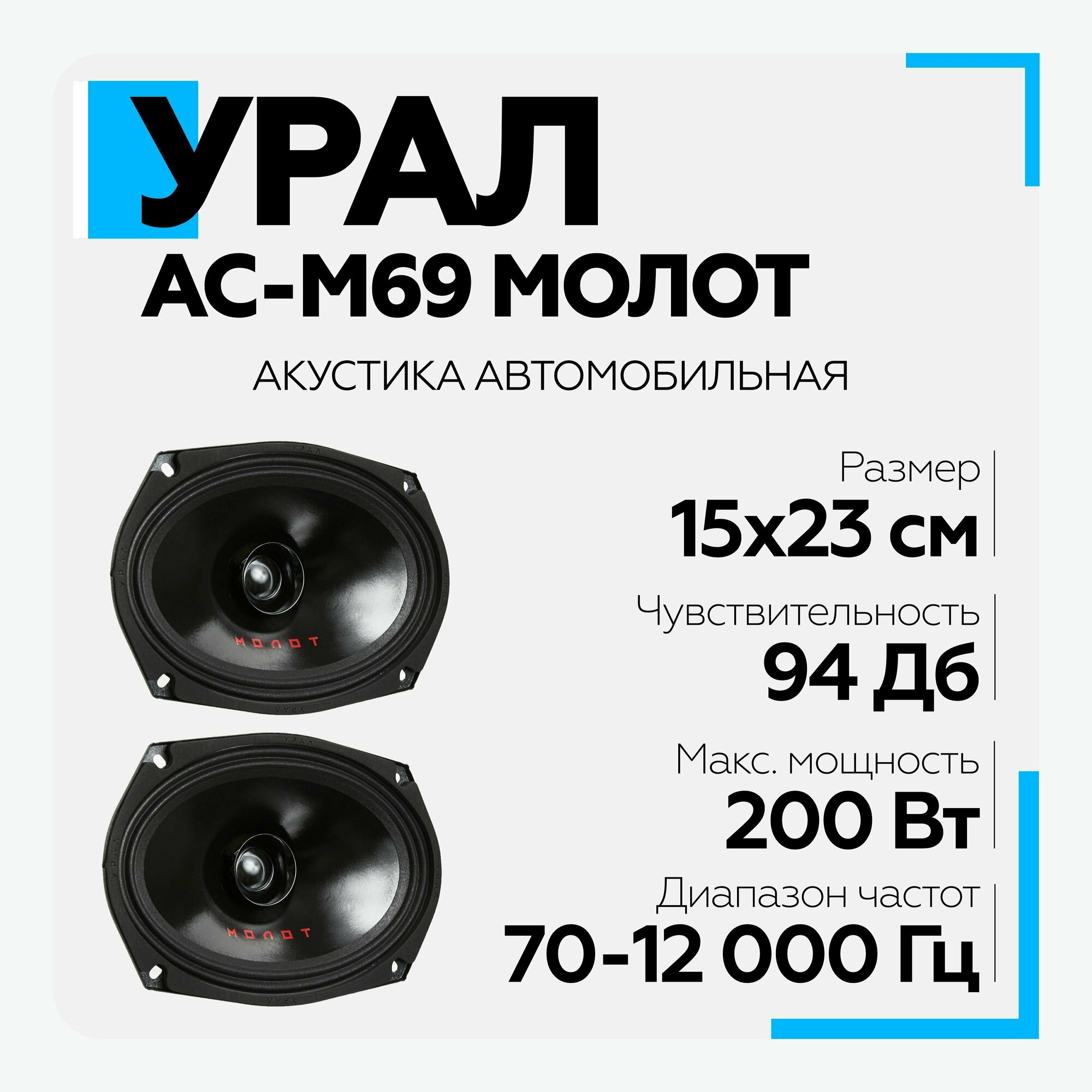Колонки автомобильные Ural Молот АС-М69 (без решетки) 200Вт 95дБ 4Ом 15x23см (6x9дюйм) (комплект: 2 колонки) широкополосные однополосные