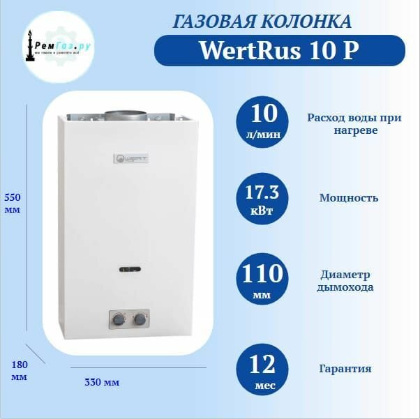 Проточный газовый водонагреватель WertRus 10P, белый интересное: