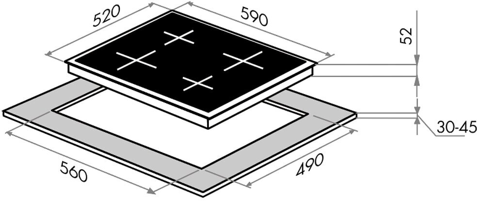 | Безопасность | защитное отключение конфорок / кнопка блокировки панели / индикатор остаточного тепла |