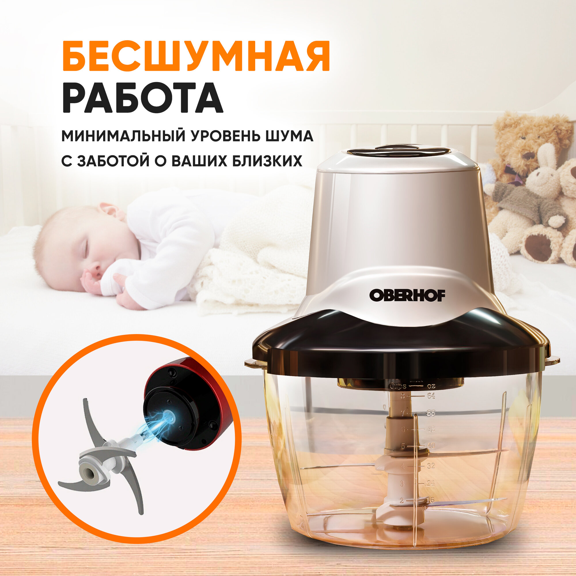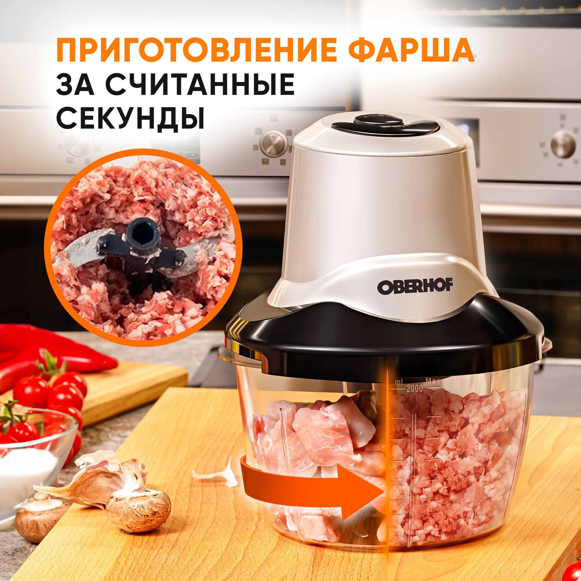 Купила данный измельчитель от фирмы Oberhor в замен своей старой мясорубки, которая занимала ну очень много места. Данный измельчитель очень компактный, но в тоже время очень мощный. Идеально подходит для приготовления фарша. Порадовало также и то, что с помощью измельчителя можно быстро нарезать ингредиенты для салата, приготовить смузи, измельчить орехи. Пользуюсь регулярно уже более 3 месяцев. а лезвия по прежнему такие же острые. Теперь это мой незаменимый помощник на кухне.