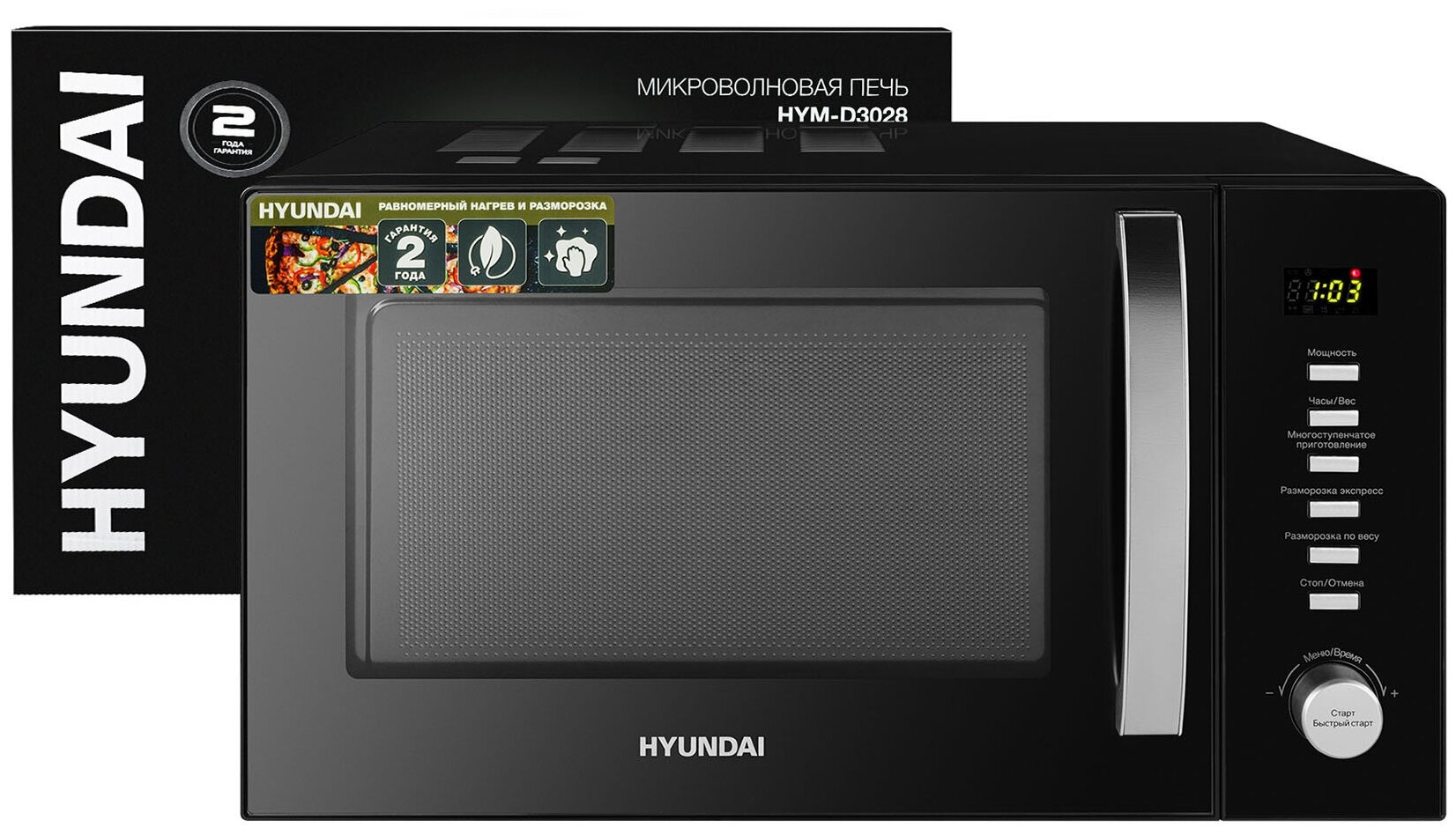 Купить Микроволновая Печь HYUNDAI HYM-D3028 черный/серебристый
