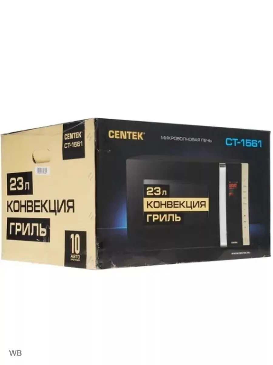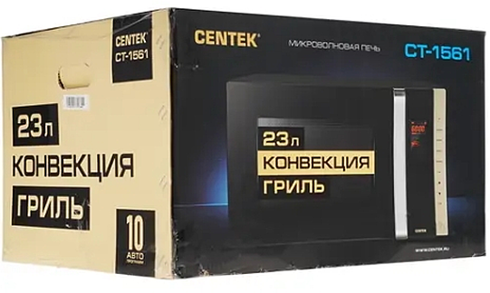 CT-1561 Centek СВЧ CT-1561 (Черный) 1300W, 23л, гриль/конвекция, 10 программ, подсветка, открывание .
