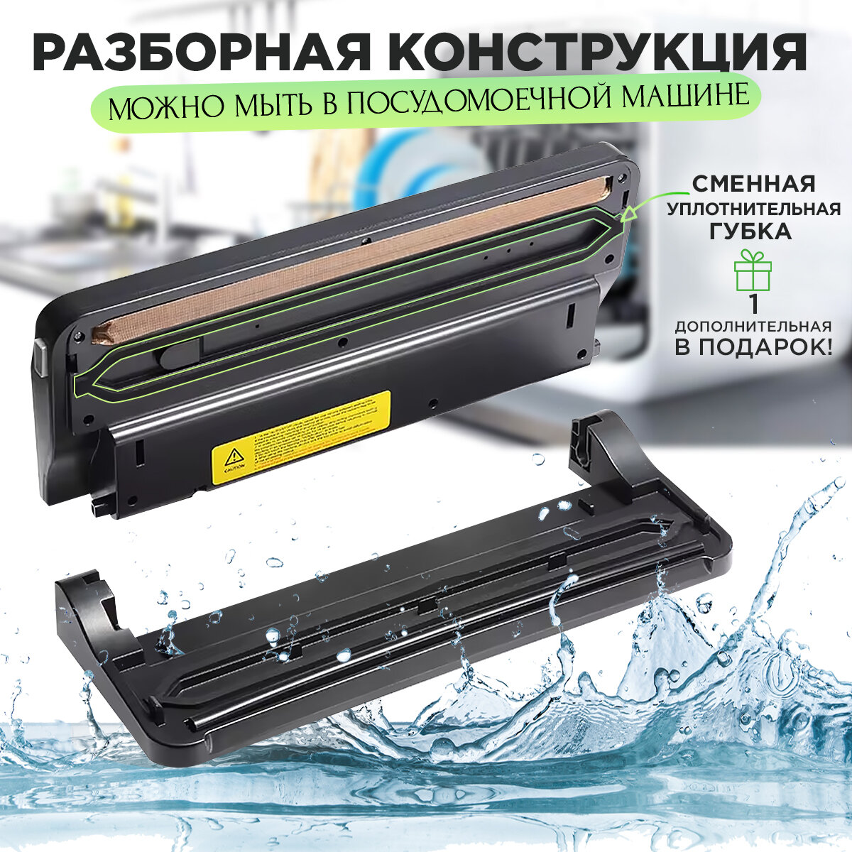 | Дополнительная информация | разборная конструкция вакууматора, позволяет после вакуумирования влажных продуктов промыть камеру нижней части прибора под струёй воды или в посудомоечной машине; в комплекте - 5 пакетов 15x25 см., дополнительный уплотнительный элемент, инструкция, гарантийный талон |
