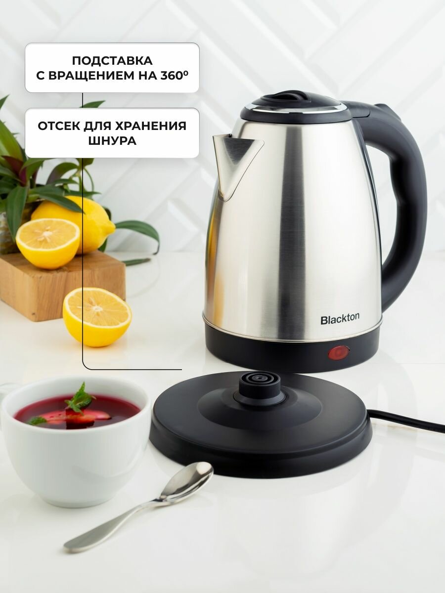 Чайник электрический BLACKTON Bt KT1811S 1,8 л, 1500 Вт, серебристый/черный