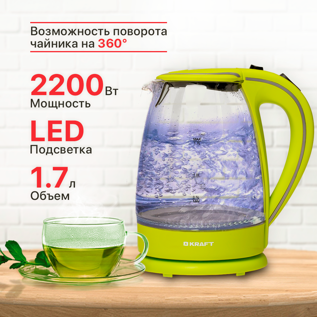 Чайник KRAFT KF-KG1702VI (Объем 1.7л, мощность 2200Вт,стекло)