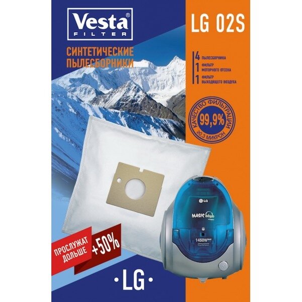 Vesta filter LG02S комплект мешков-пылесборников синтетических (4шт+ 2 фильтра) для пылесоса LG