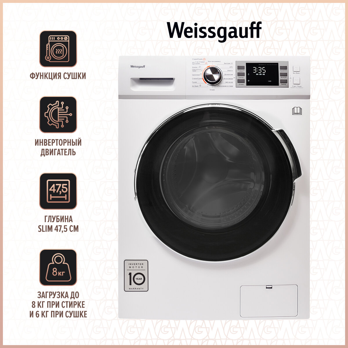 Купить Стиральная машина Weissgauff WMD 4748 DC Inverter класс: A загр.фронтальная макс.:8кг (с сушкой) белый