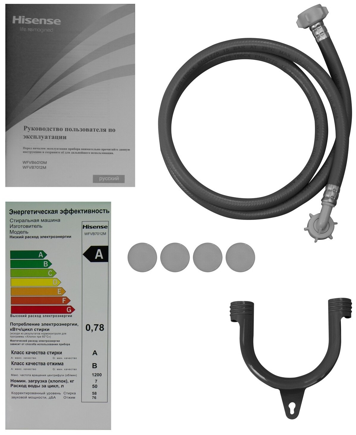 Стиральная машина с паром Hisense WFQP6012VM, белый/черный