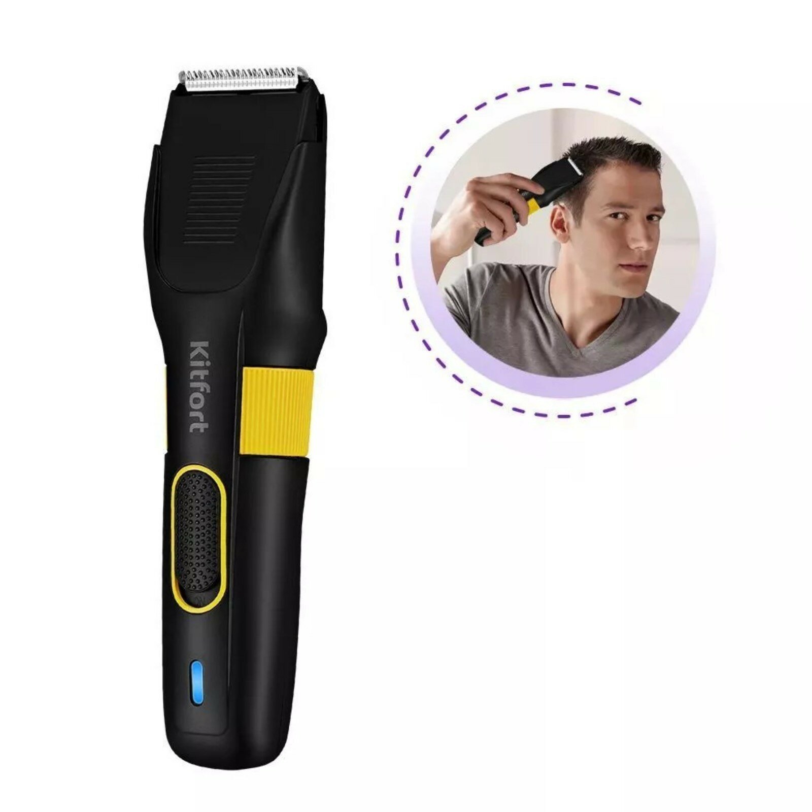 Машинка для стрижки Kitfort КТ-3130-1, 3.6 Вт, 2 насадки, АКБ, чёрно-желтая