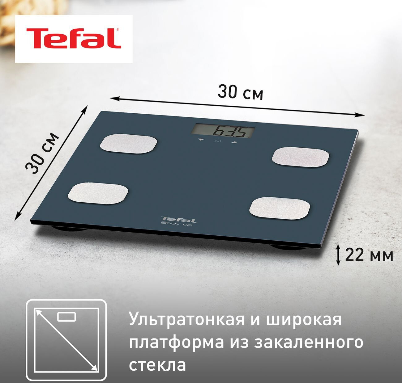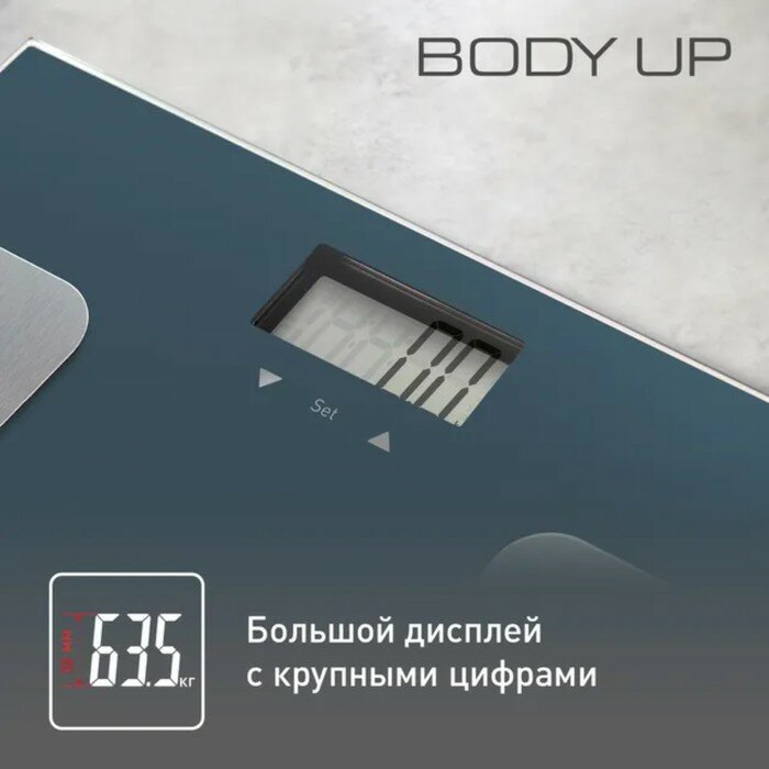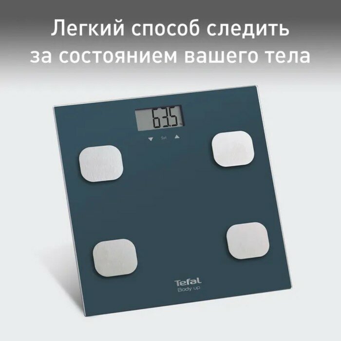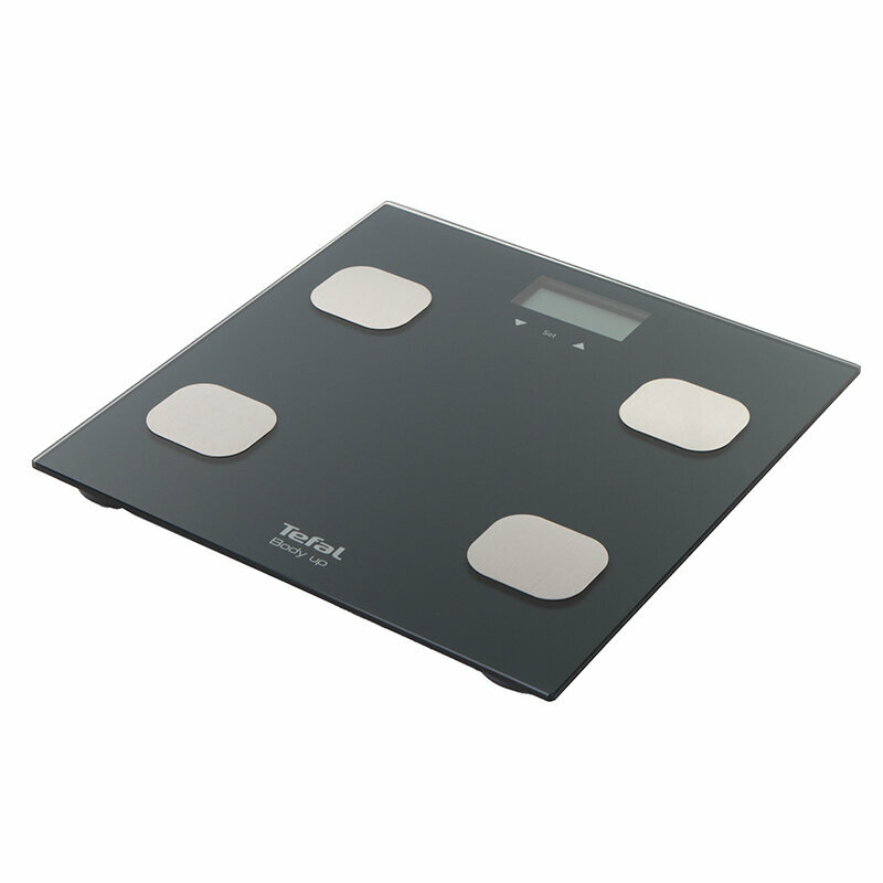 Весы напольные TEFAL Body Up BM2520V0, электронные, максимальная нагрузка 150 кг, квадрат, стекло, серые, 2100111795