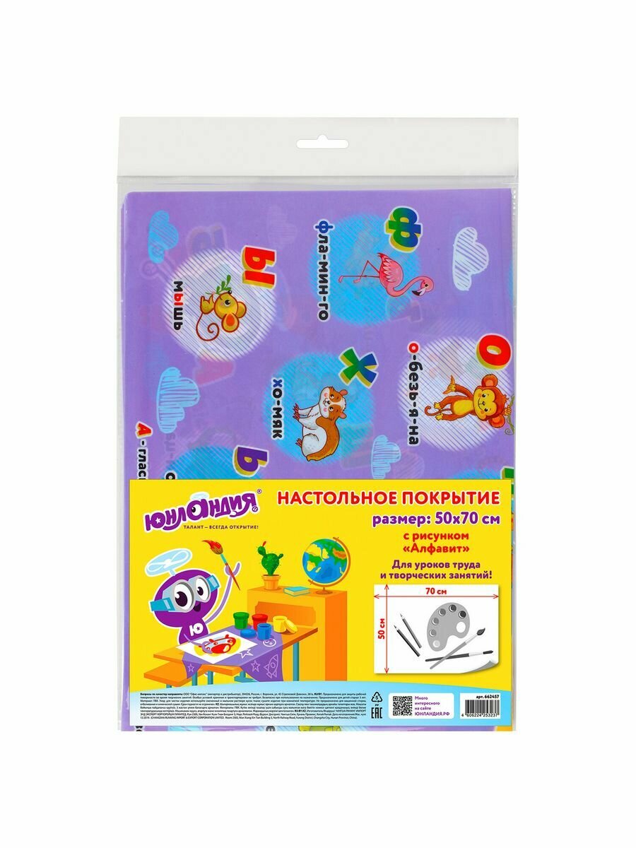 Настольное покрытие ЮНЛАНДИЯ для труда и творческих занятий, "Алфавит", 50х70 см, ПВХ, 662457