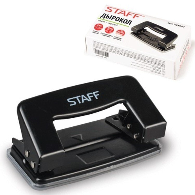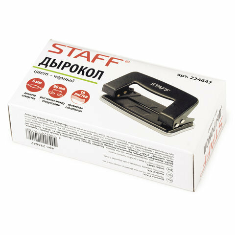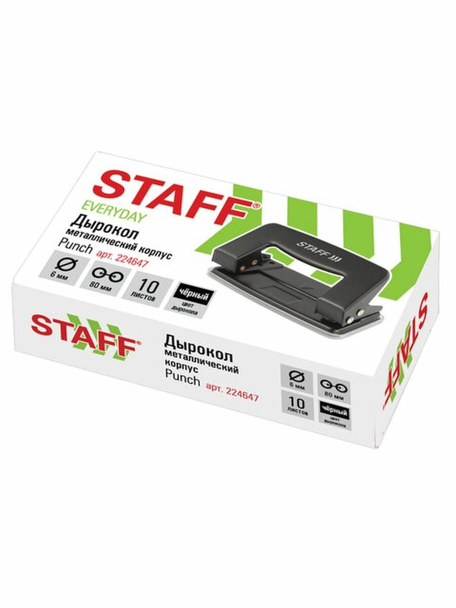 Дырокол металлический STAFF "EVERYDAY,", до 10 листов, без линейки, черный, 224647 (цена за 1 ед.товара)