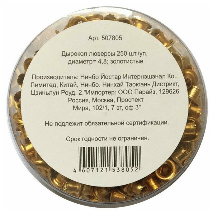 Люверсы для дырокола Attache 250 шт./уп, диаметр= 4,8, золотистые
