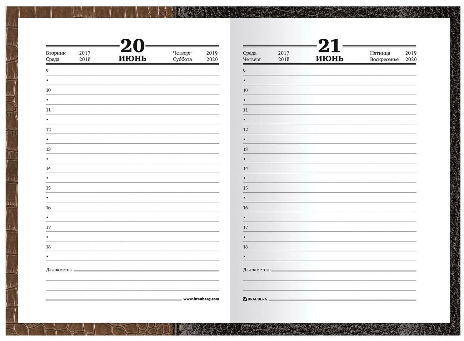 Ежедневник BRAUBERG полудатированный на 4 года, А5, 133х205 мм, "Кожа коричневая", 192 л., 121590
