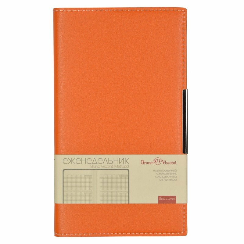 Еженедельник BrunoVisconti недатированный, А6 (102 х 177 мм.), "METROPOL" оранжевый 80 л., Арт : 3-492/04