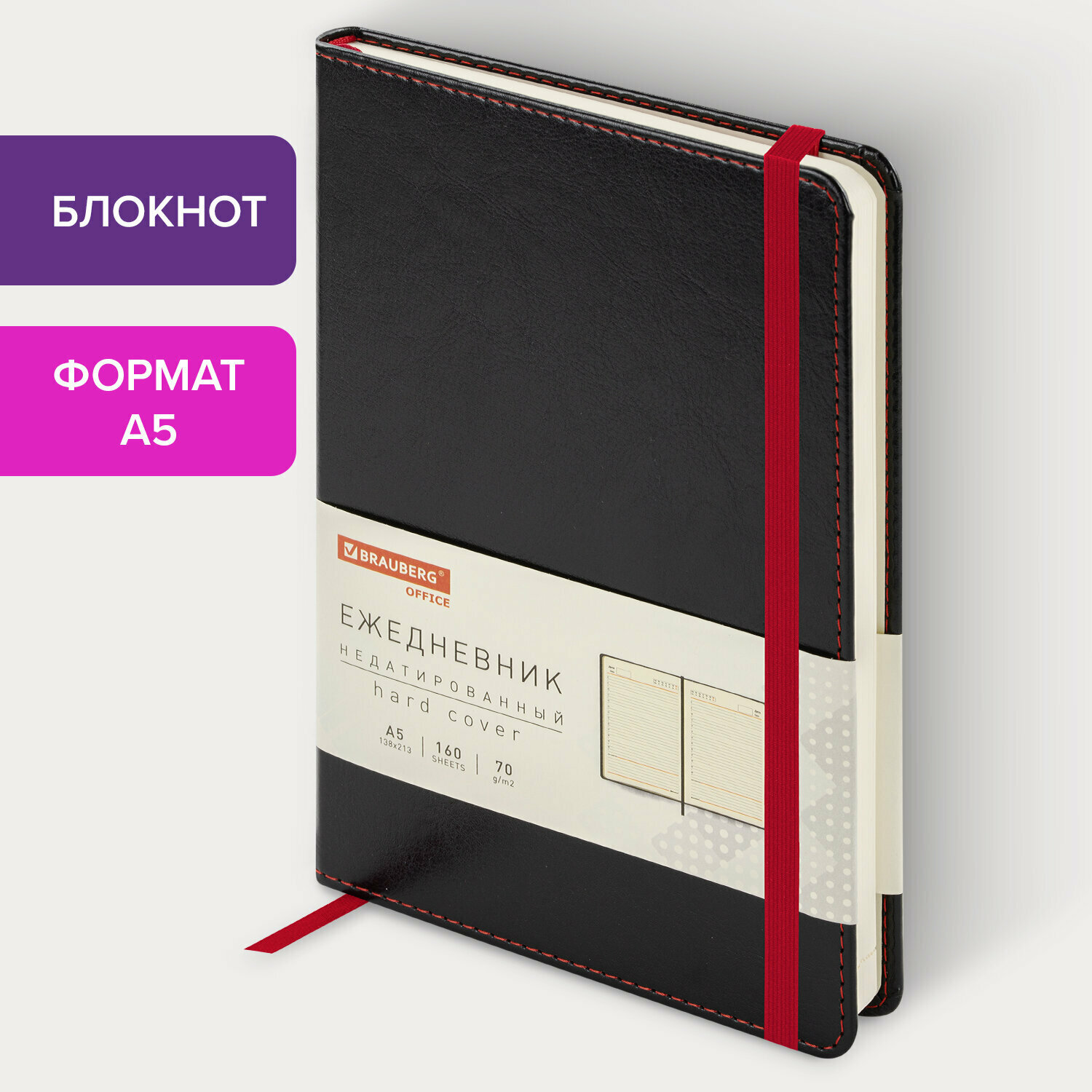 Ежедневник недатированный А5 138х213 мм BRAUBERG "Office", под кожу, 160 л., черный, 113290
