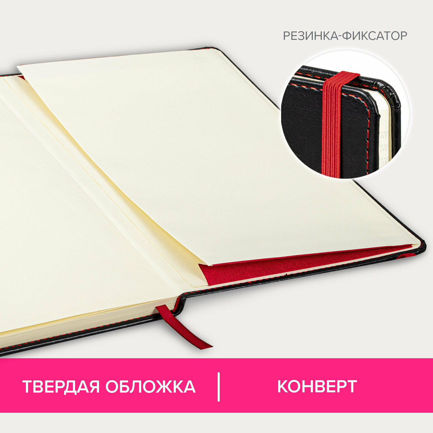 Ежедневник недатированный с резинкой А5 138х213мм под кожу черный BRAUBERG Office, ко, 113290