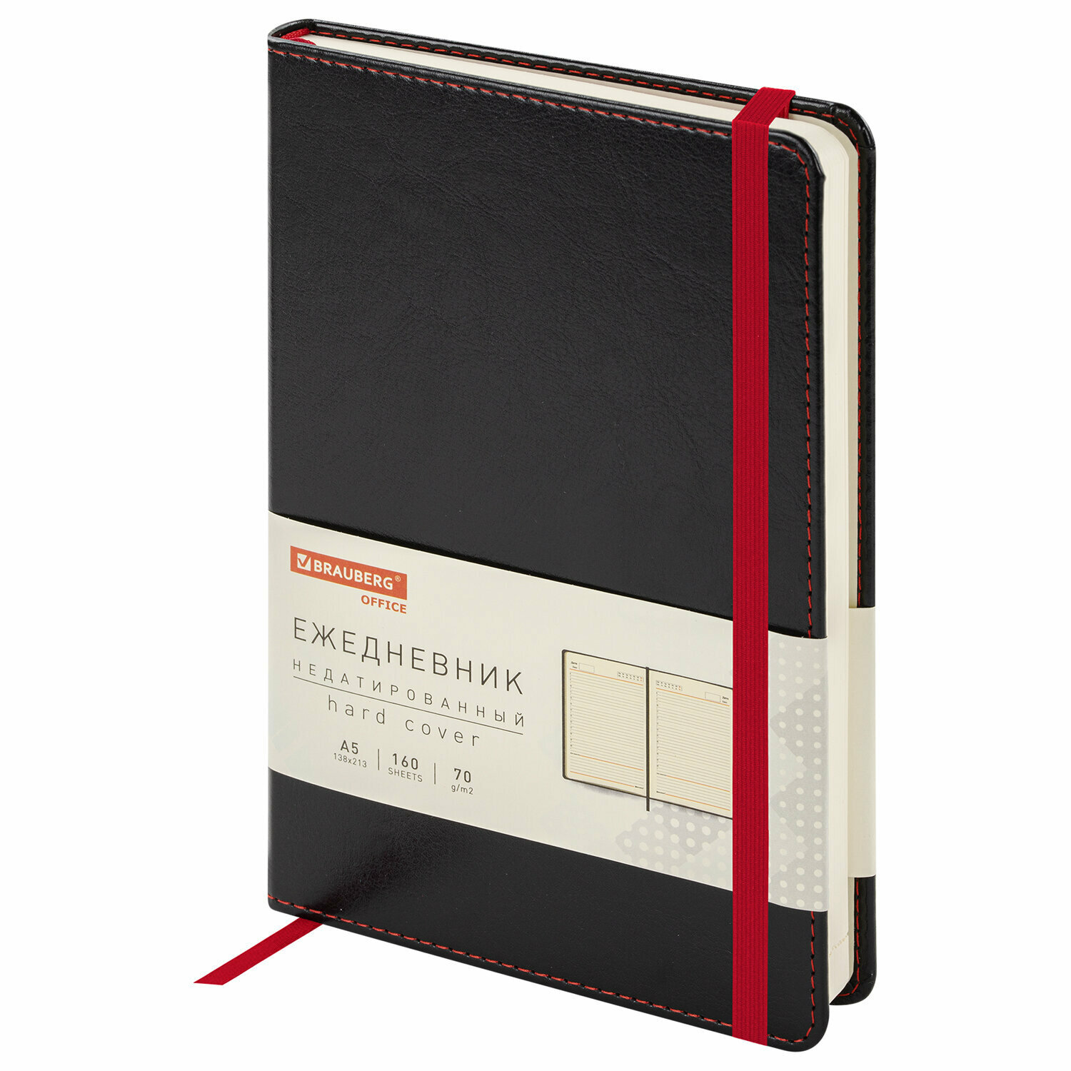 113290, Ежедневник недатированный А5 138х213 мм BRAUBERG Office, под кожу, 160 л., черный, 113290