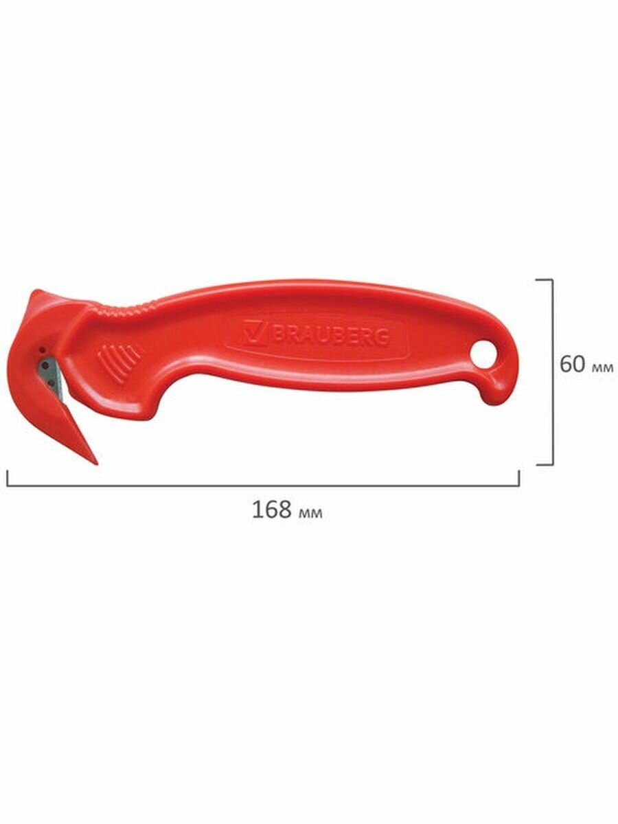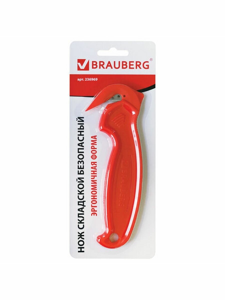 Нож складской безопасный BRAUBERG "Logistic", для вскрытия упаковочных материалов, красный, блистер, 236969 (цена за 1 ед.товара)