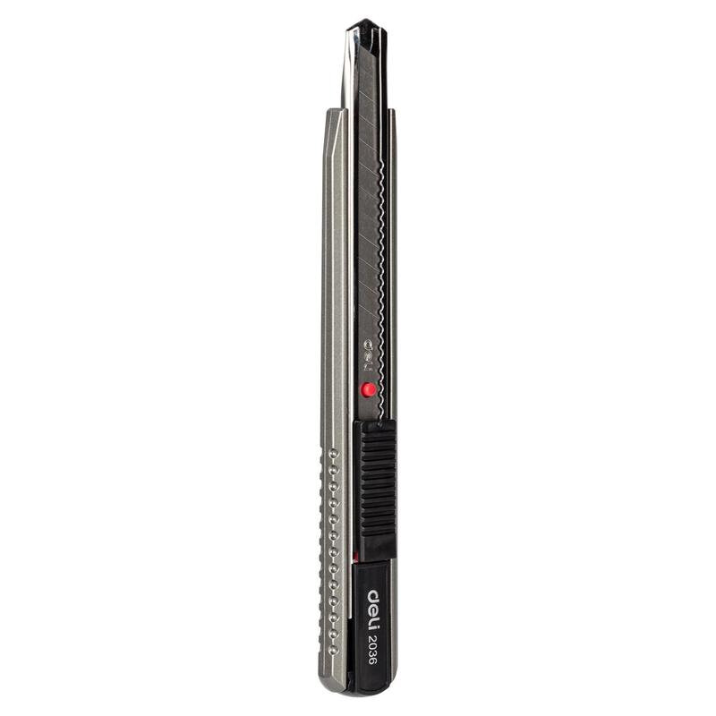 Нож канцелярский 9мм Deli E2036, усиленный с фиксатором, серый