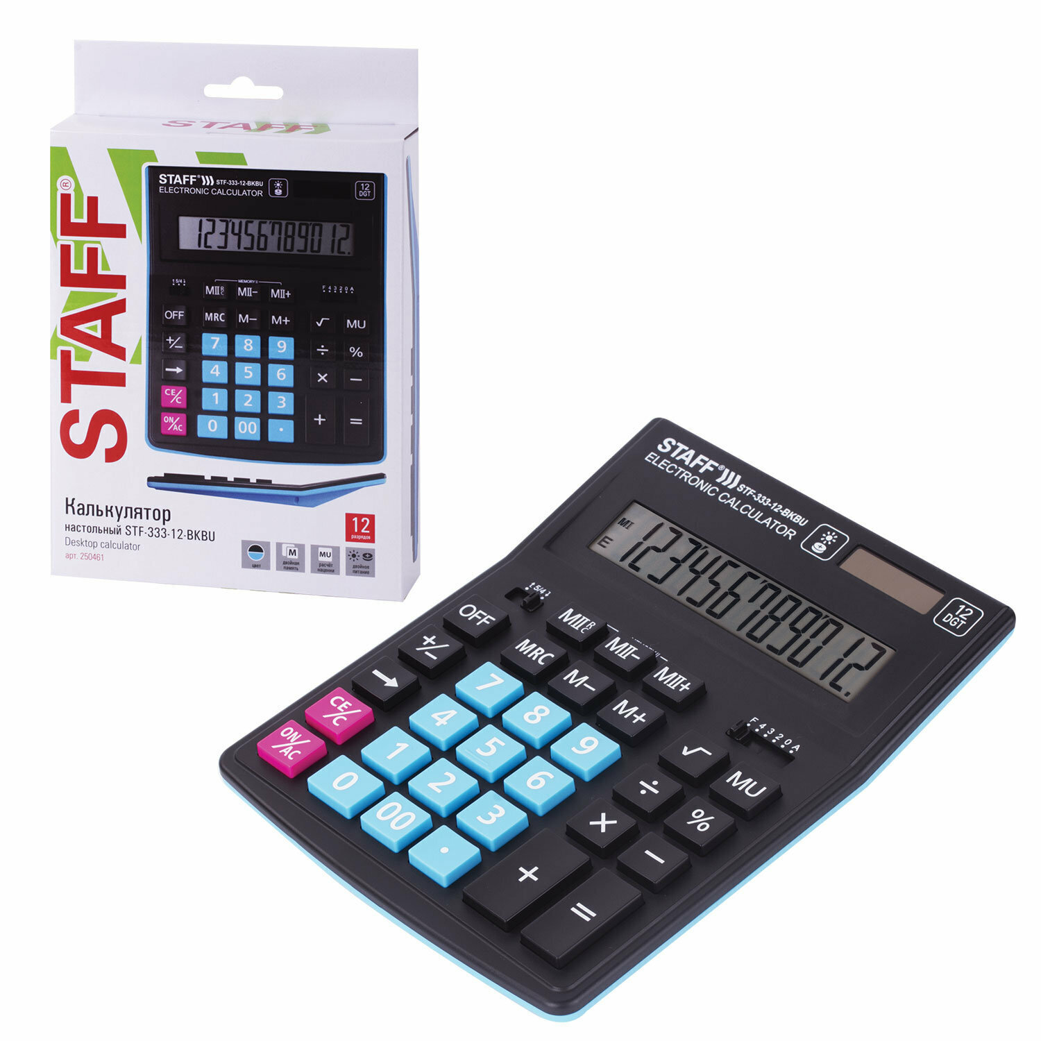 Калькулятор настольный STAFF PLUS STF-333-BKBU ( 200×154 мм) 12 разрядов, черно-синий, 250461