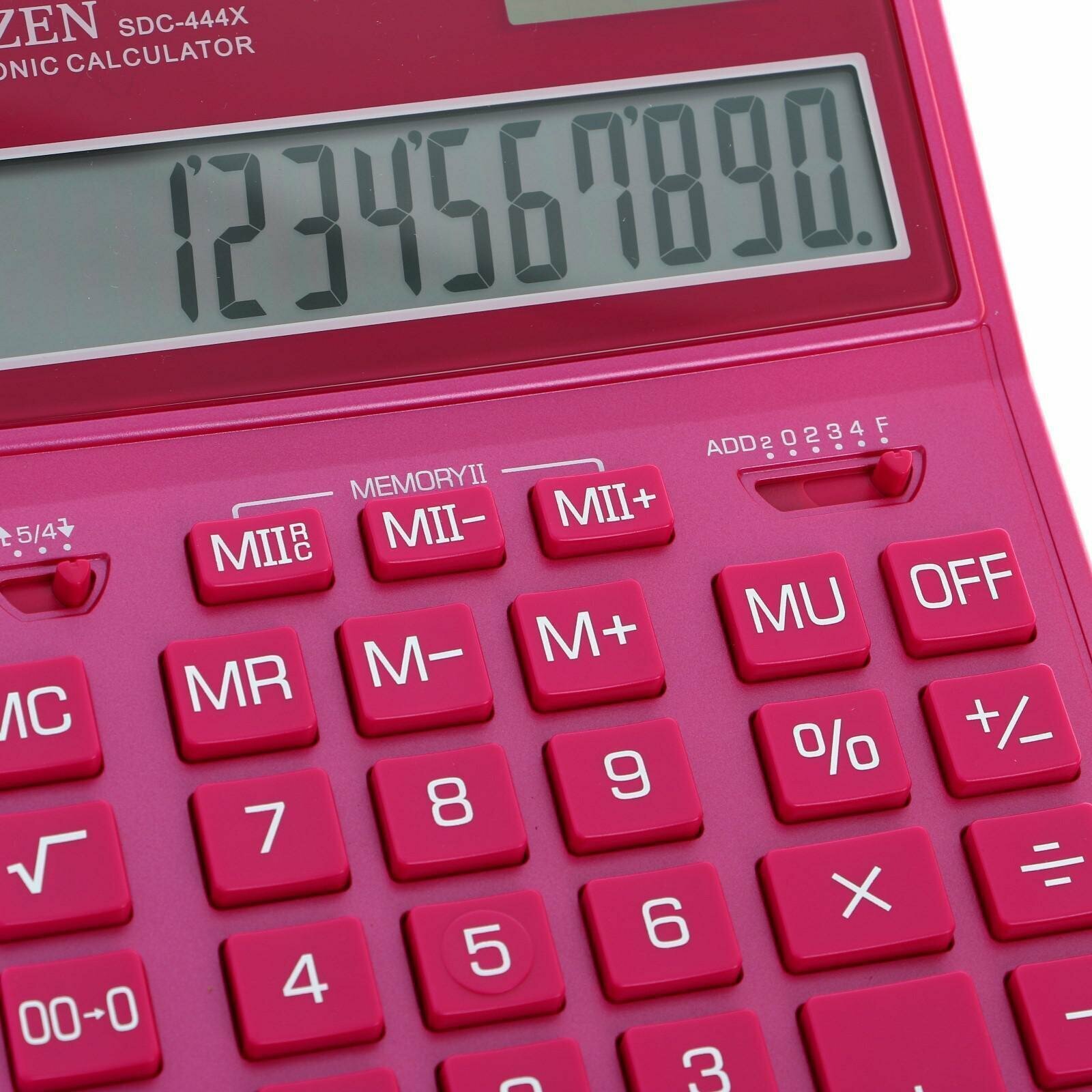 Калькулятор настольный Citizen SDC-444X, 12-разрядный, двойное питание, розовый (SDC444XRPKE)