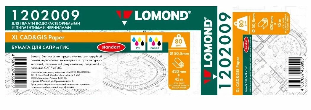 Бумага Lomond для САПР и ГИС "Стандарт" 1202009 17" 420мм-45м/80г/м2/белый матовое для струйной печати втулка:50.8мм (2") (упак.:1рул)