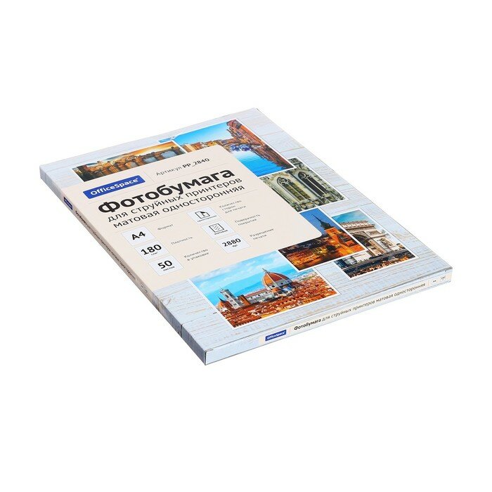 Фотобумага OfficeSpace для струйных принтеров, А4, 50 листов, матовая, односторонняя, 180 г/м2 (PP_2840)