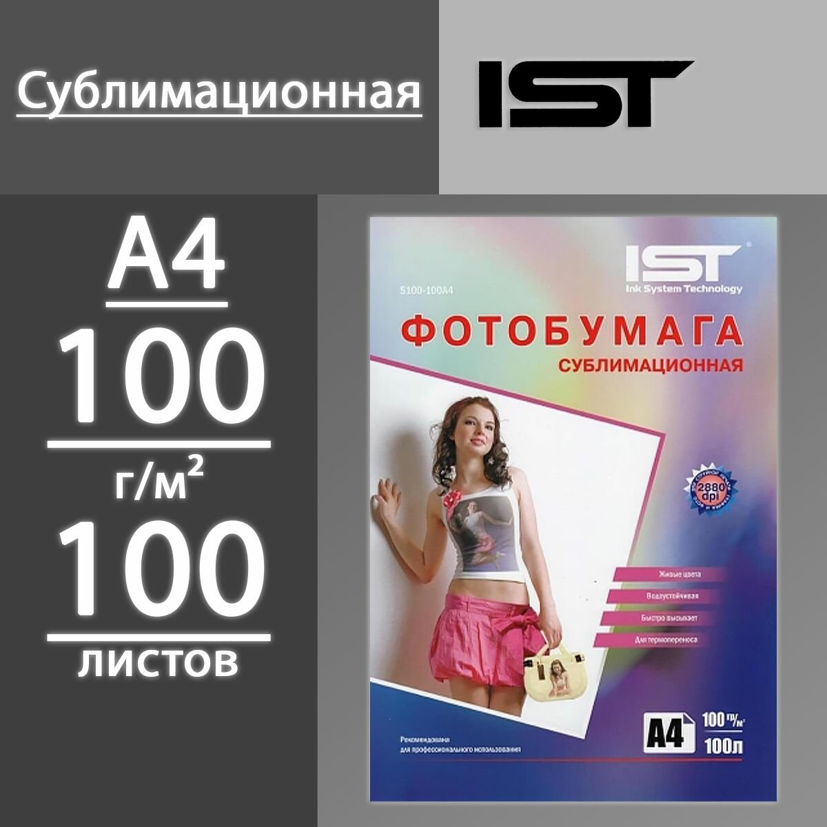 Фотобумага сублимационная 100гр/м, А4 (21х29.7), 100л, IST