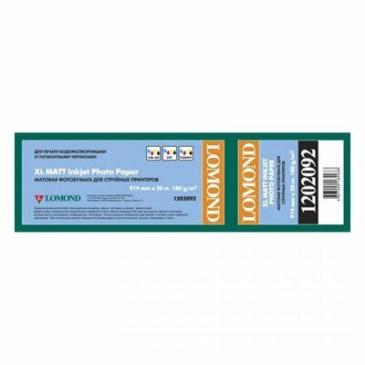 Бумага Lomond XL Matt Paper, ролик 914мм*50, 8 мм, 180 г/м2, 30 метров.