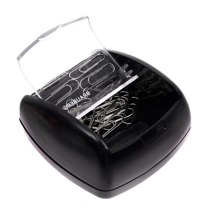 Скрепочница магнитная закрытая Brauberg (пластик, роликовый механизм) + 30 скрепок, черная (225188), 10 уп.