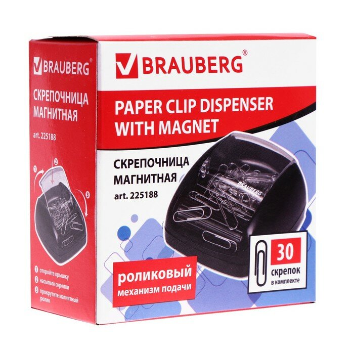 СохранитьСкрепочница магнитная Brauberg С 30 скрепками, роликовый механизм подачи, черная (225188) интересное: