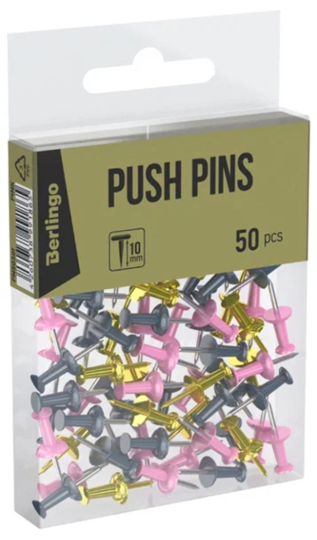 Кнопки силовые Berlingo, цветные, розовые, пвх-упаковка, 50шт. (PN5030c), 24 уп.