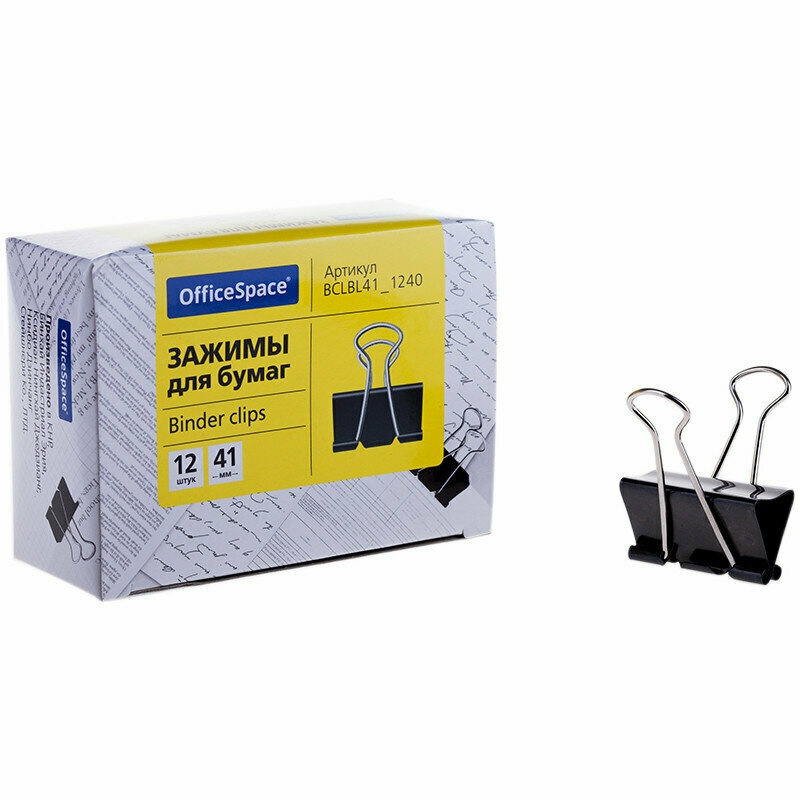Зажимы для бумаг OfficeSpace 41 мм, 12 шт, черные, картонная коробка (BCLBL41_1240)