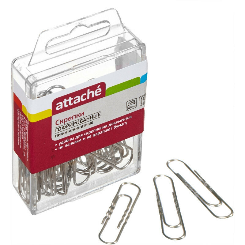 Скрепки Attache 50 мм, никелированные, гофрированные, 30 штук