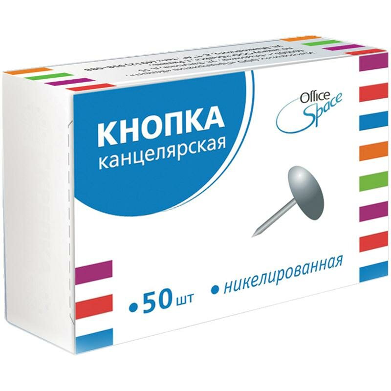 Кнопки канцелярские OfficeSpace никелированные, 10 мм, 50 шт (Pn__2256)
