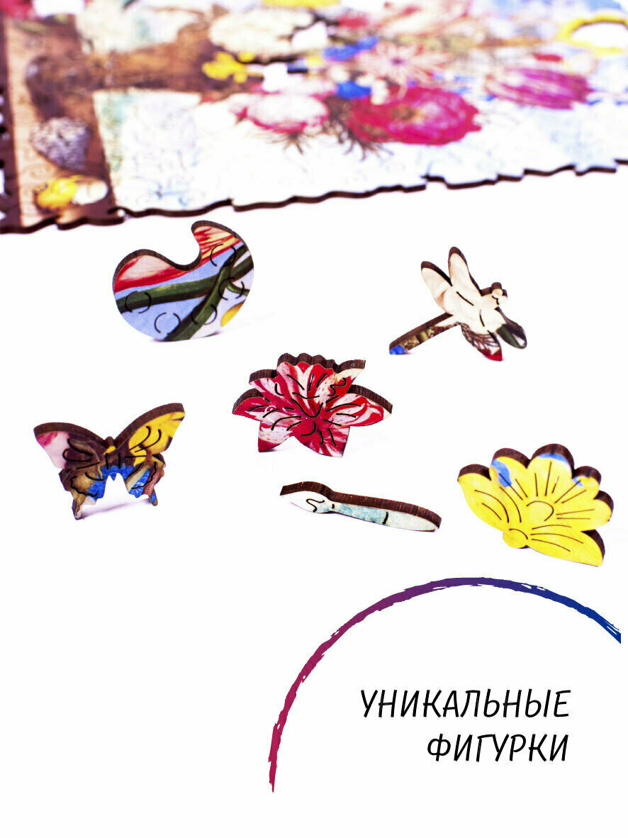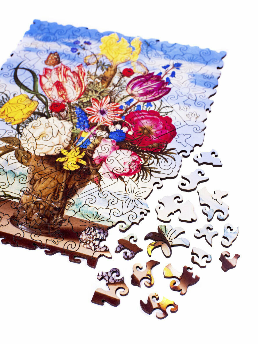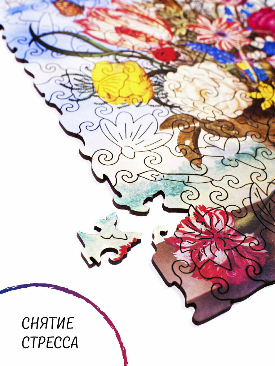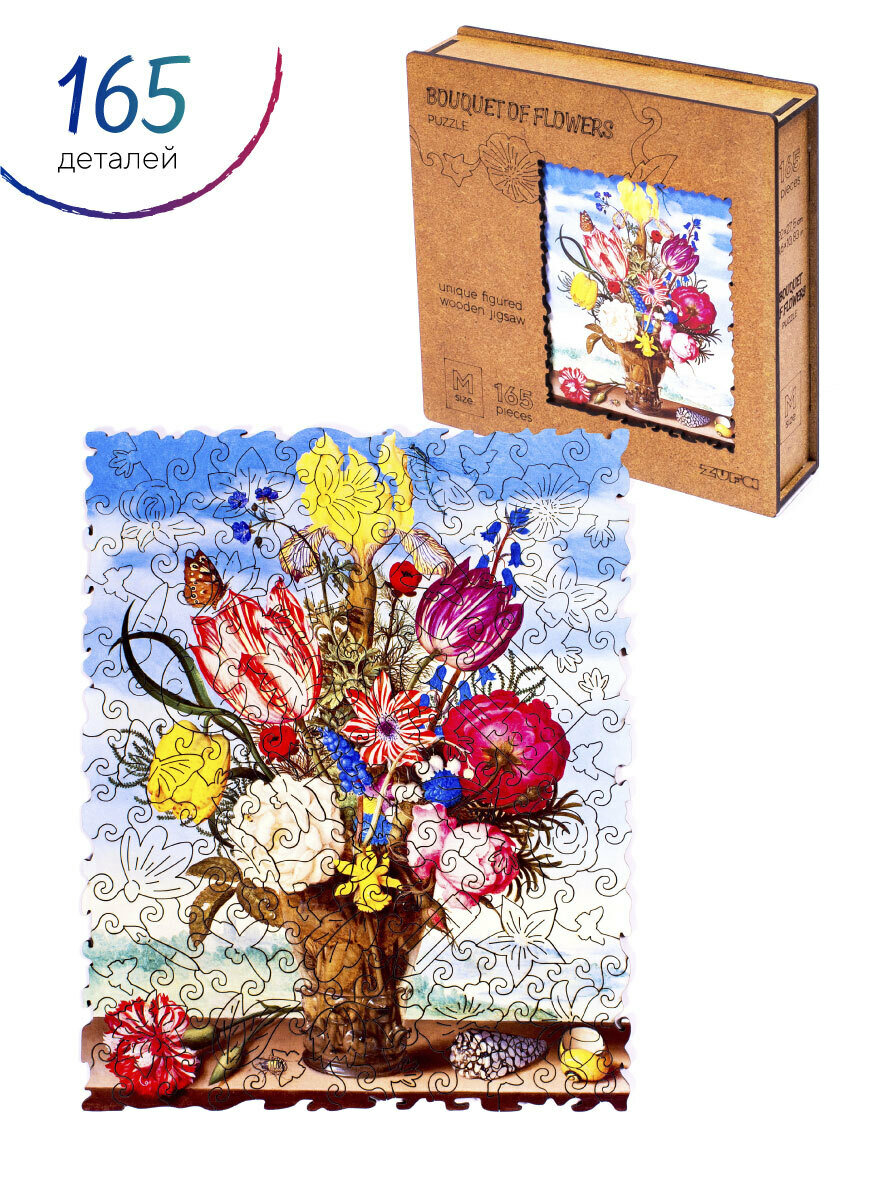 Деревянные пазлы для взрослых и детей Zufa / Подарок женщине, подарок маме, подарок подруге / Развивающие игрушки / Букет М - 165 деталей 27,5х22 см
