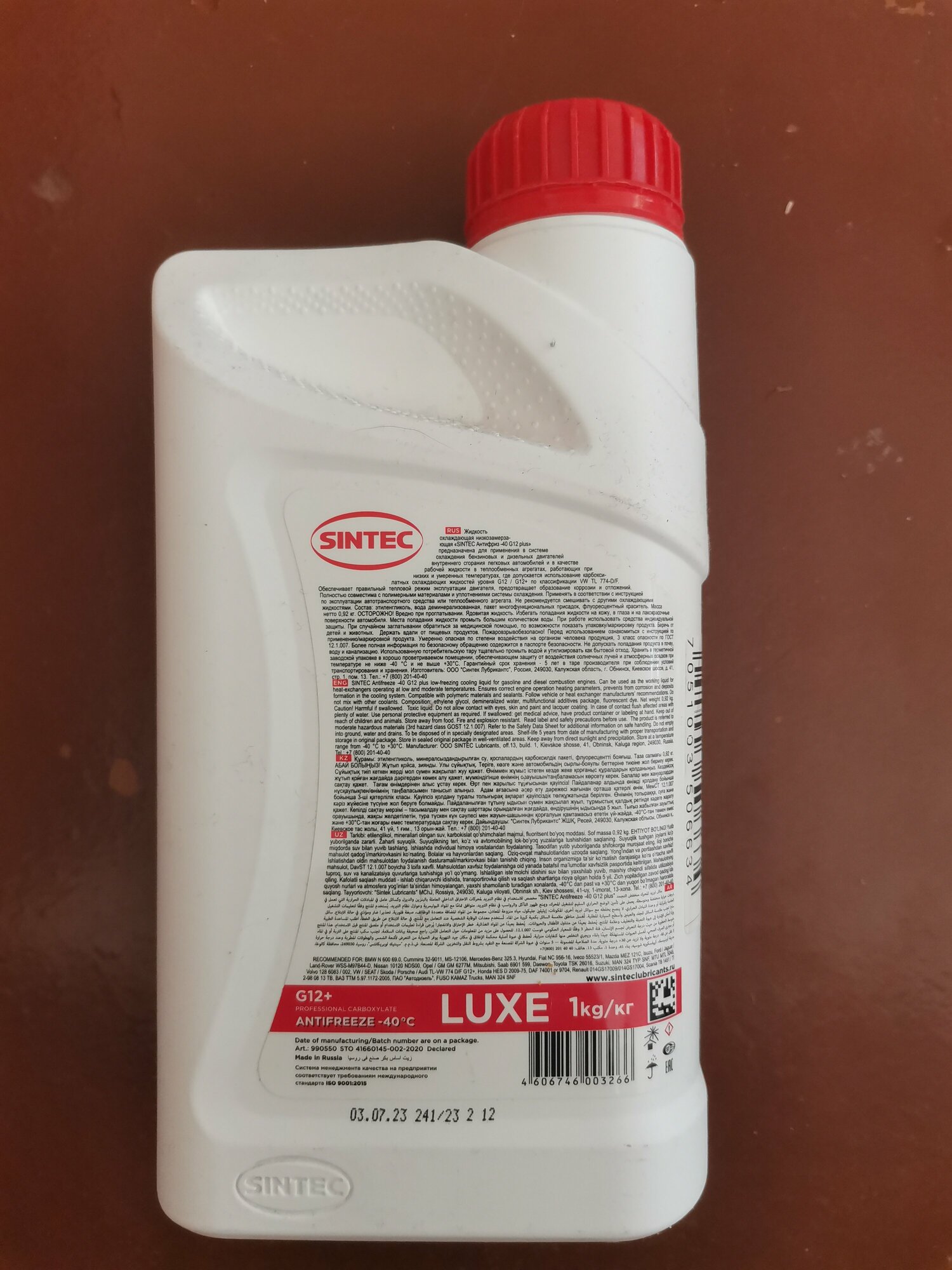 Антифриз Sintec LUXE G-12+ (красный) 1кг