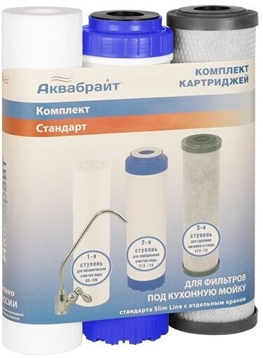 Комплект картриджей для очистки воды Аквабрайт К-1 Стандарт ПП-5 УГП-10 УГА-10 33651 .