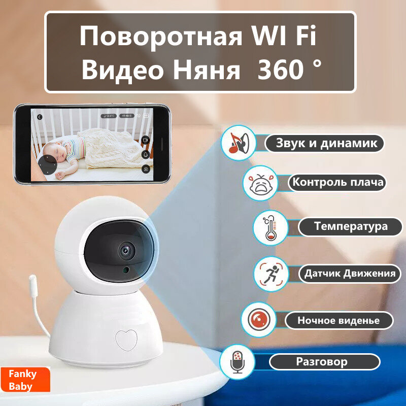 Видеоняня Fanky 1080HD поворот на 360 двусторонняя аудиосвязь ночное видение интересное: