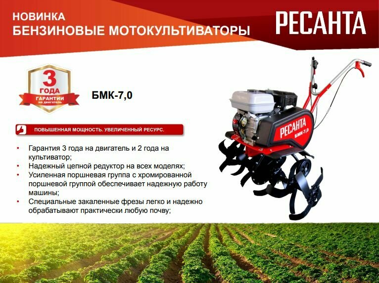 Ниже Вы можете прочитать отзывы на Мотокультиватор Ресанта БМК-7.0 ( Ширина 900 / Глубина 300 / Мощность 7 л.с. ), ознакомится с подробными характеристиками, посмотреть интересные обзоры и фотографии на Мотокультиватор Ресанта БМК-7.0 ( Ширина 900 / Глубина 300 / Мощность 7 л.с. ).