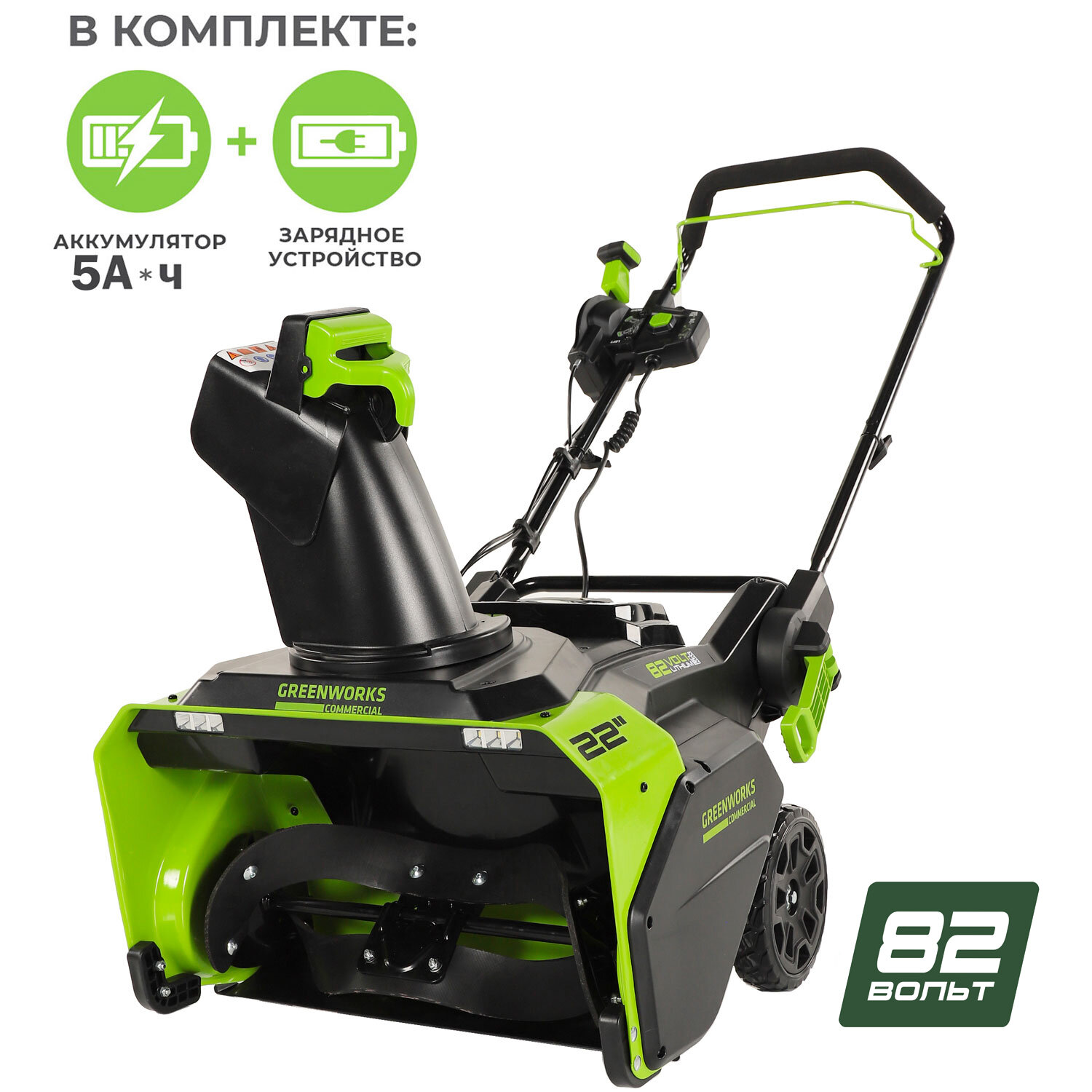 Снегоуборщик аккумуляторный greenworks Commercial GD82 с аккумулятором 5 А.ч