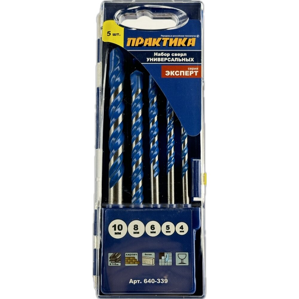 Набор сверл универсальных ПРАКТИКА Эксперт, 5 шт 4,5,6,8,10 мм, 640-339 , 1 шт.