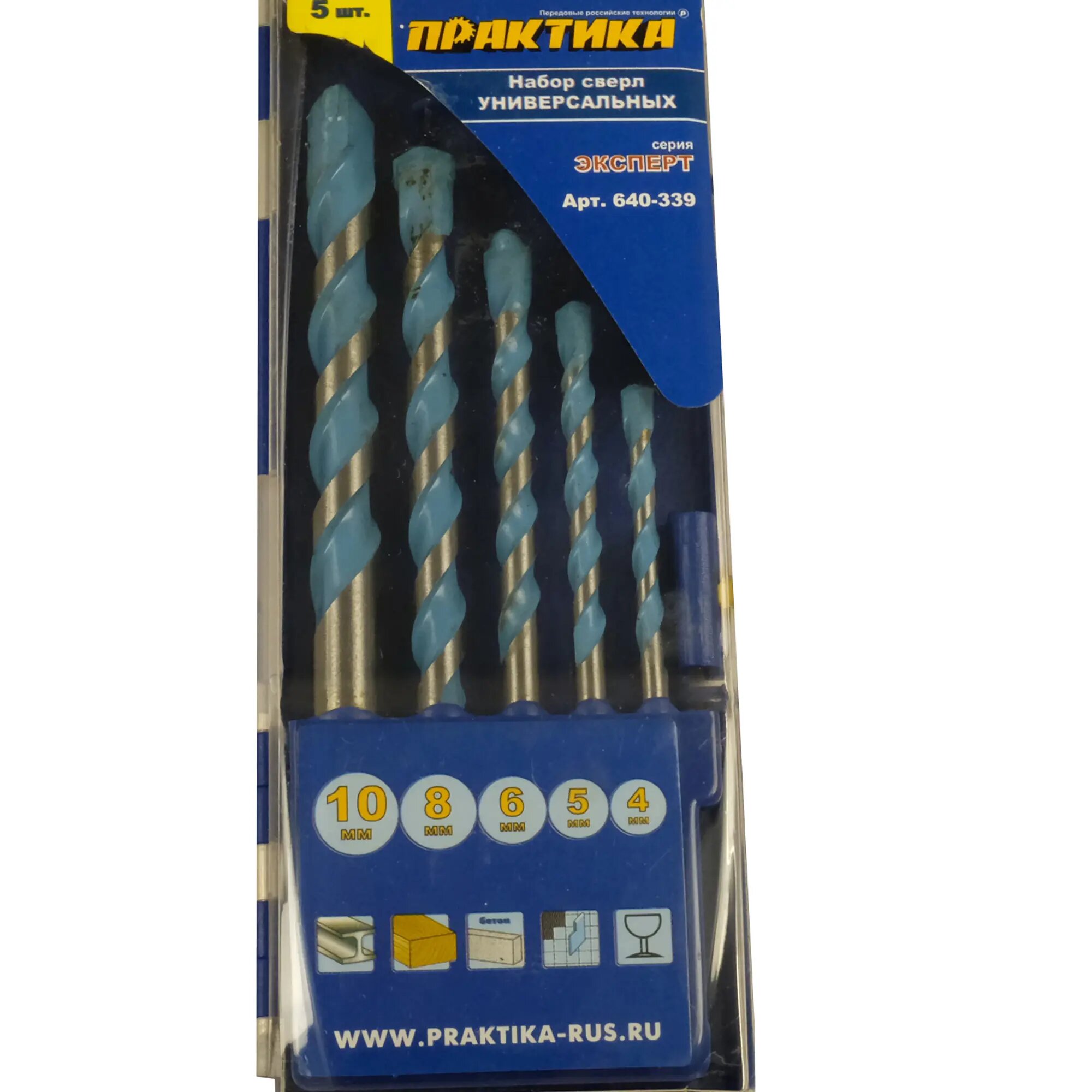Сверла ПРАКТИКА "Эксперт", универсальные, 4-6, 8, 10 мм, 5 шт (640-339)