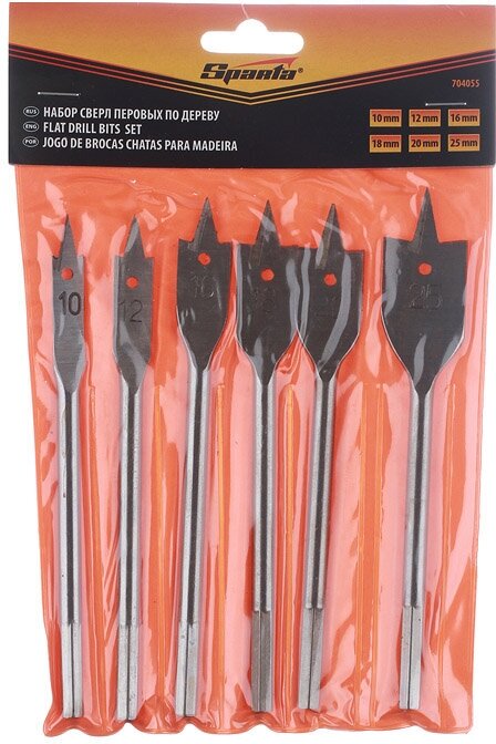 Набор свёрл по дереву перьевых 6 шт., 10-25 мм