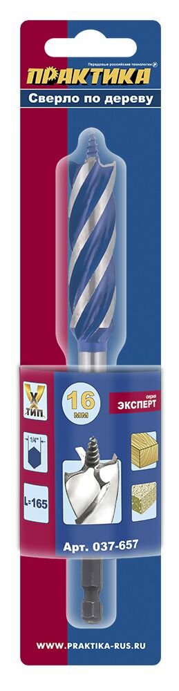 Сверло по дереву X-тип (16x165 мм; в блистере) ПРАКТИКА 037-657