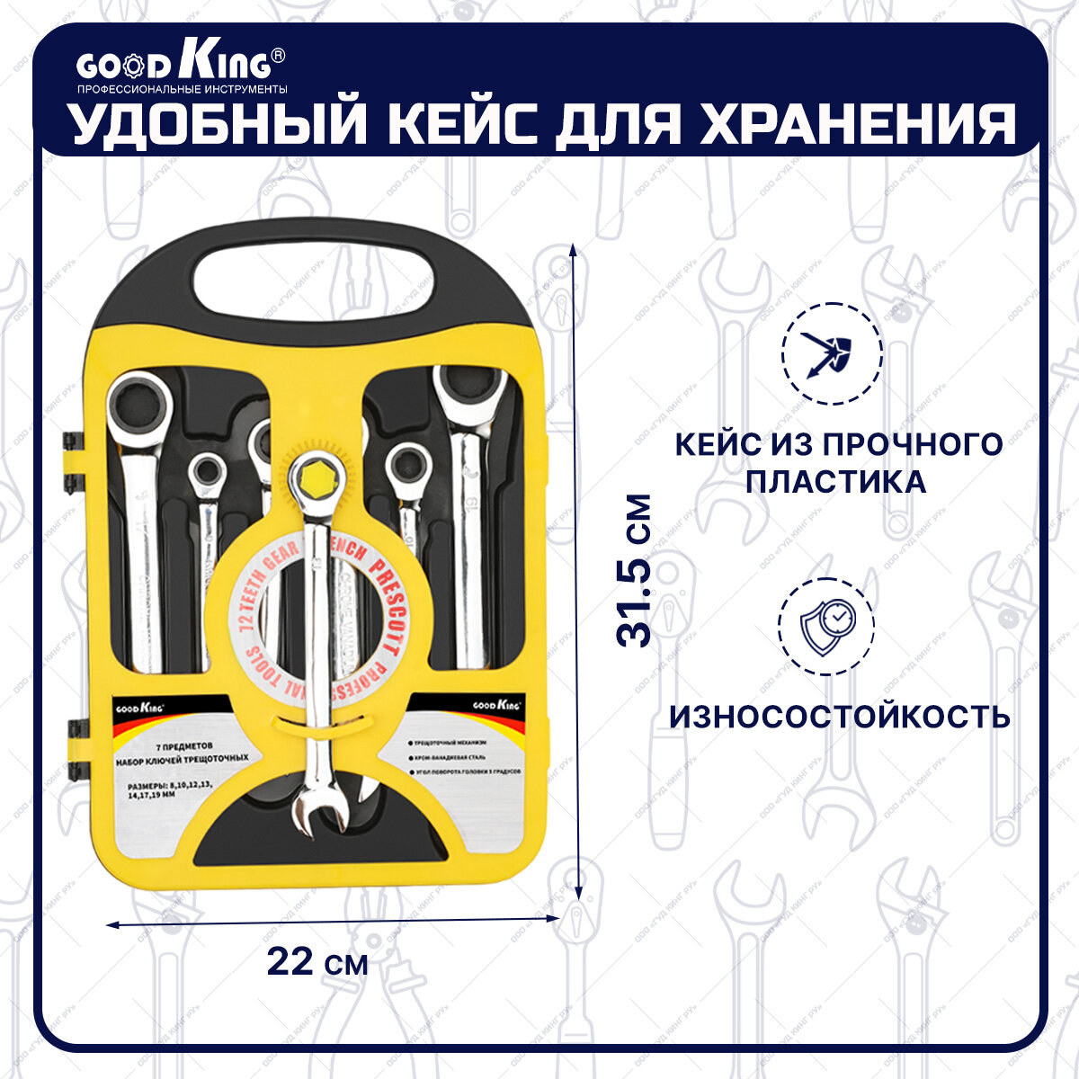 Набор ключей комбинированных трещоточных Goodking TK-1007, 7шт интересное: