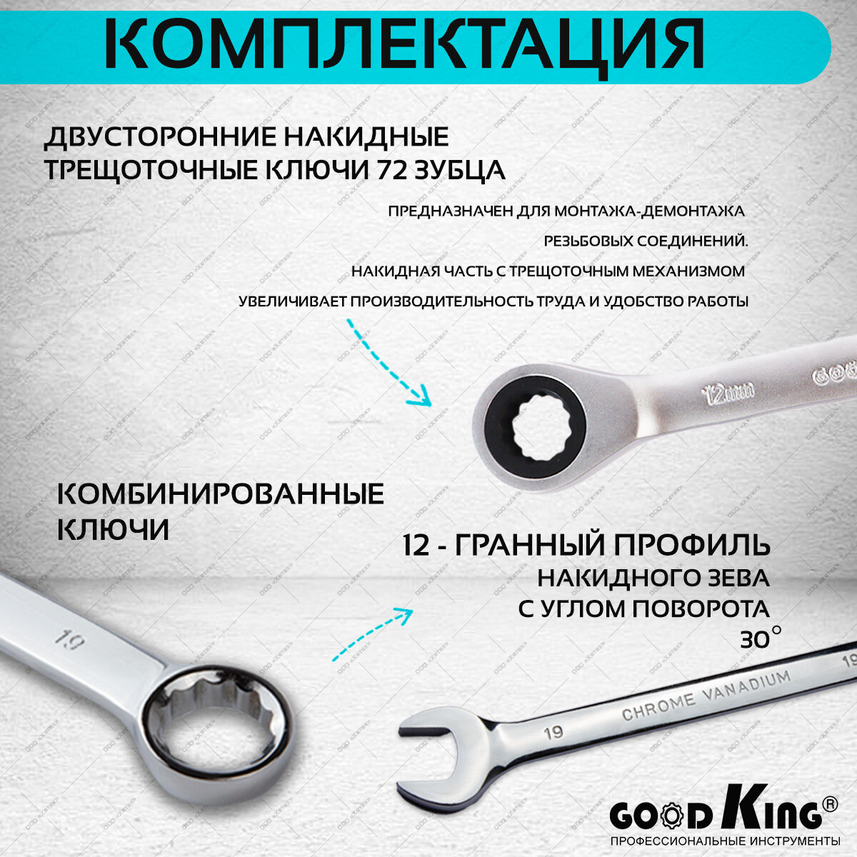 Набор инструментов для автомобиля GOODKING 61 предмет, 1/4 1/2, трещотка 72 зуба B-10061