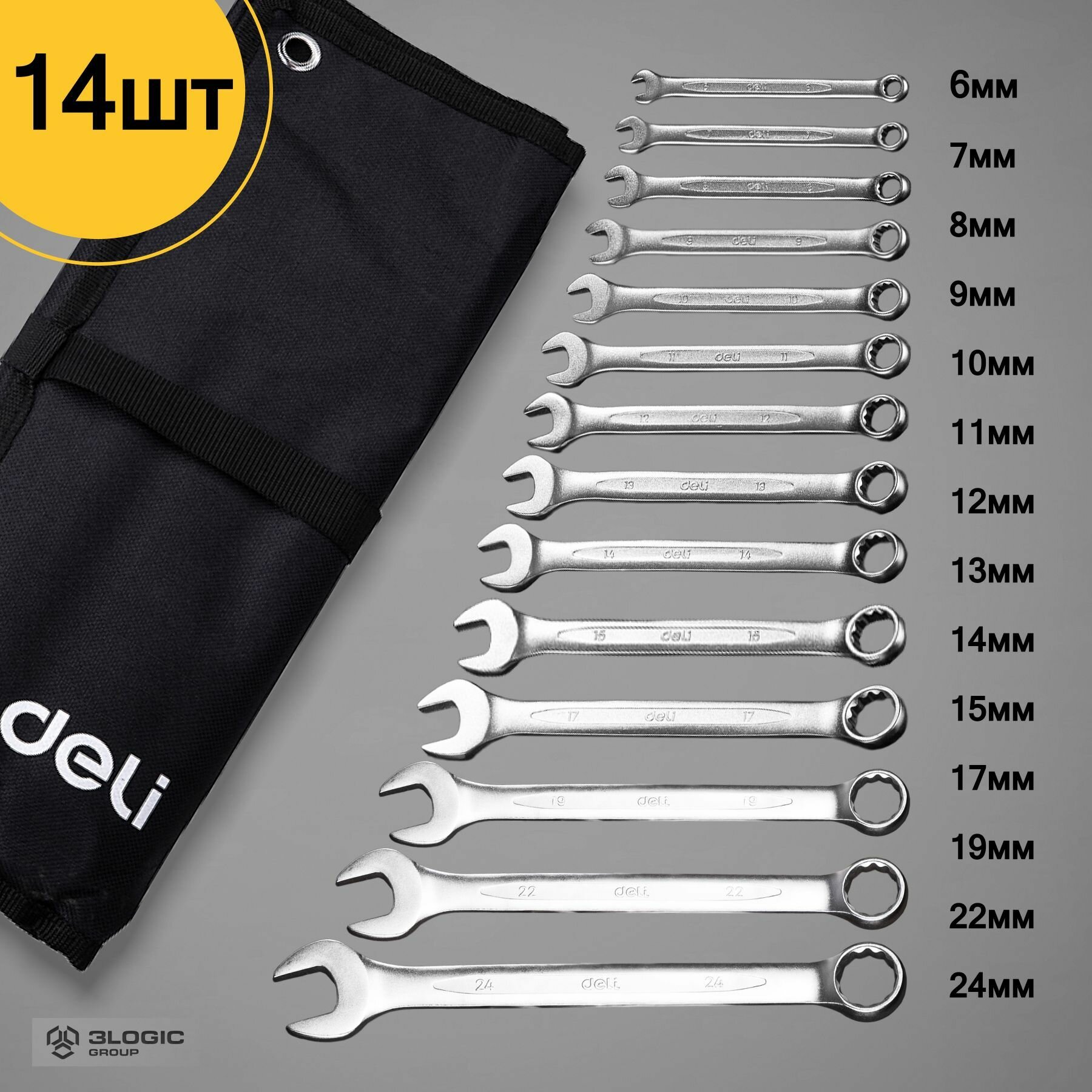 Набор ключей комбинированных гаечных Deli DL130014A 14шт 6-24мм (DL130014A)