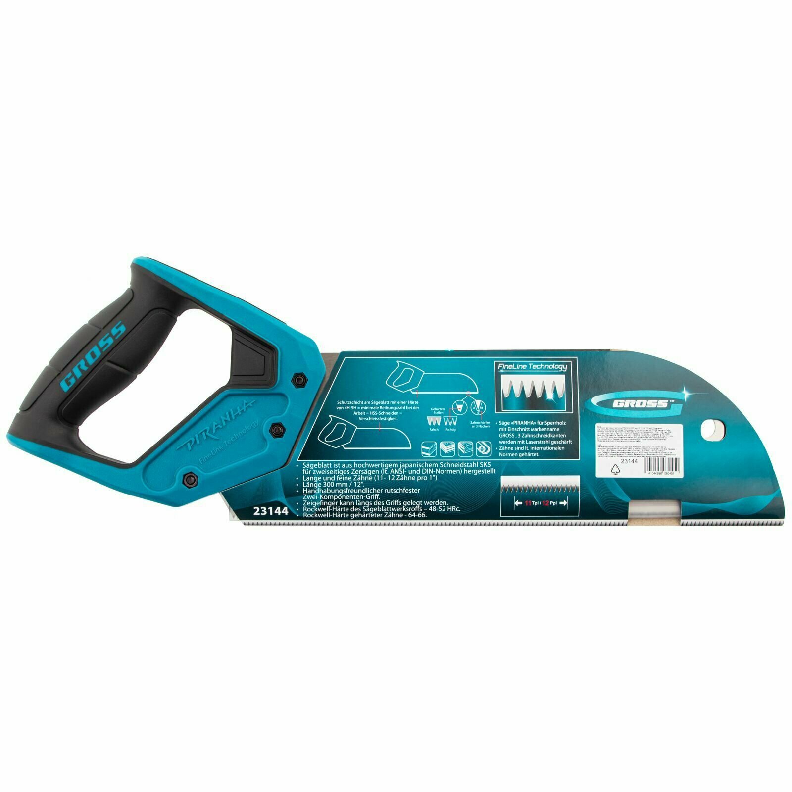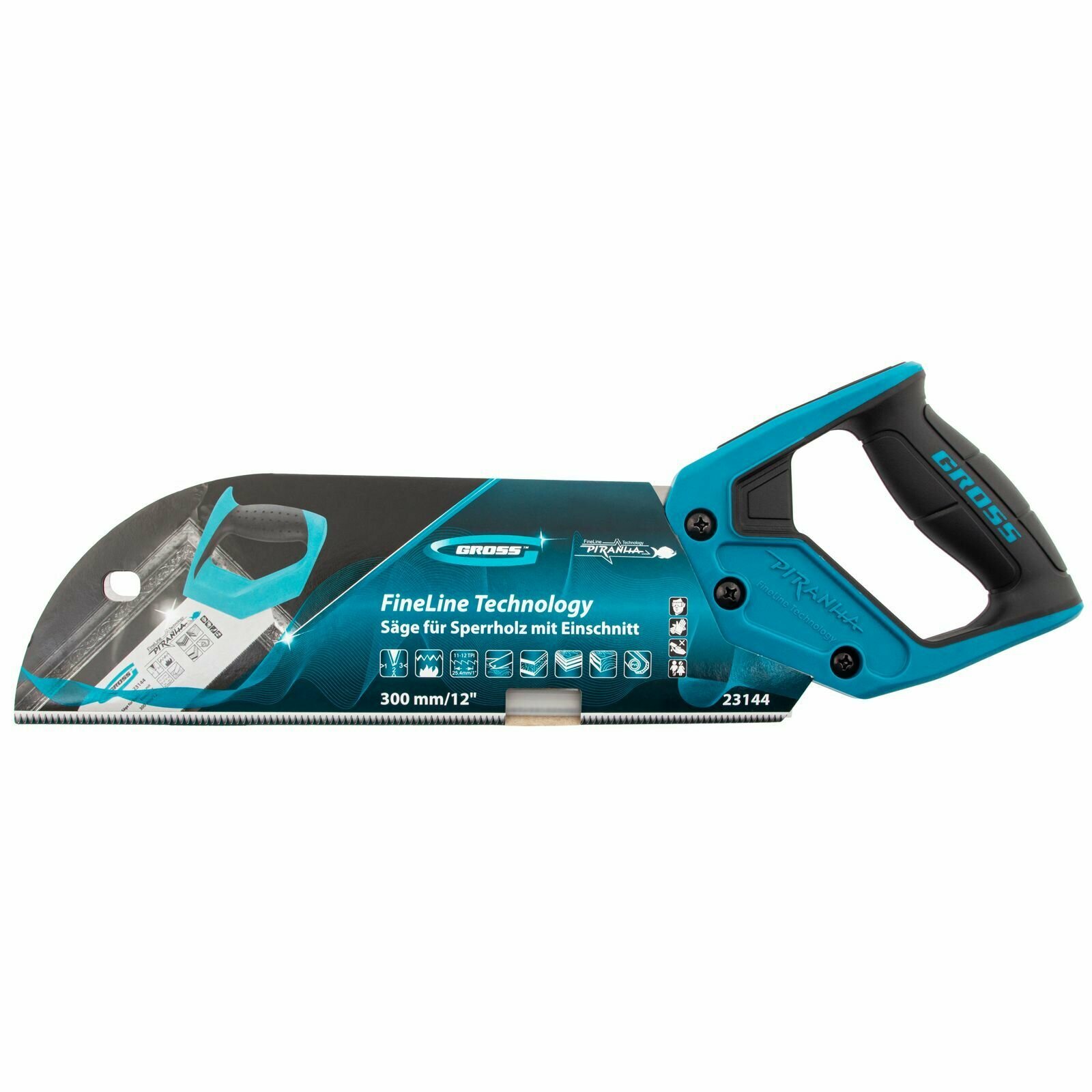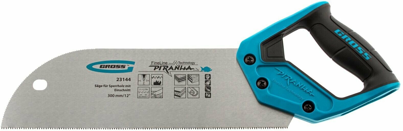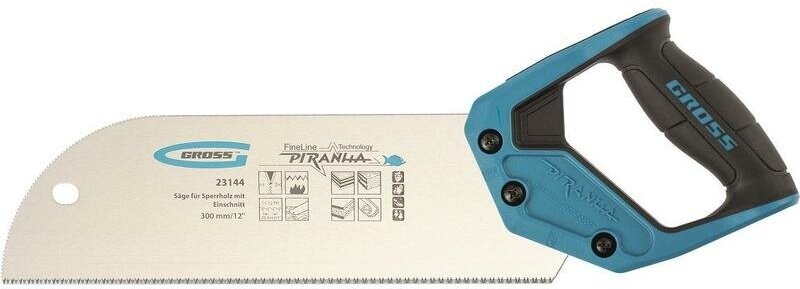 Пила для фанеры с запилом Piranha, 300 мм/12 , 11-12 TPI, каленый зуб 3D, двухкомпонентная рукоятка Gross 23144